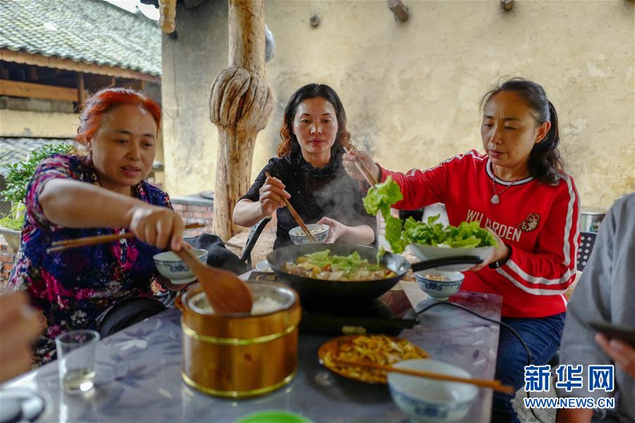 9月19日,游客在花田乡何家岩村的农家乐里品尝花田贡米和土家美食。新华社记者 刘潺 摄