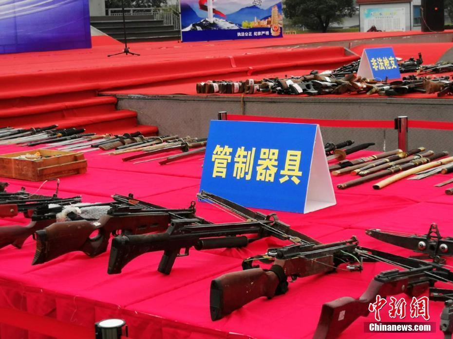当日,河南省公安厅在郑州东区如意湖广场设主现场,18个省辖市设分现场,在集中同步展示后,非法枪爆物品将在济源、南阳、平顶山、安阳、信阳5地集中销毁。 刘鹏 摄