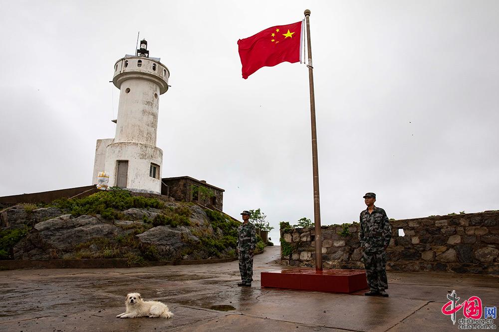 王继才的妻子王仕花说:“我们在岛上的每一天都是从升旗仪式开始的,每天都这样。天刚蒙蒙亮,我和王继才就扛着国旗走向小岛后山。在不大的小操场上,王继才负责展开国旗,用沙哑的喉咙,喊声响亮的“敬礼”。我仰望着五星红旗敬礼,尽管我的手举得不到位,或者敬礼不规范,但是,一腔热血在我的心中沸腾着。只有看着国旗在海风中飘扬,我才觉得这个小岛是有颜色的。“王继才去世了,民兵陈宽华、胡品刚等人继承了他的遗志,继续守卫在祖国的东门,确保开山岛上每天升起五星红旗。中国网记者 董宁 摄影