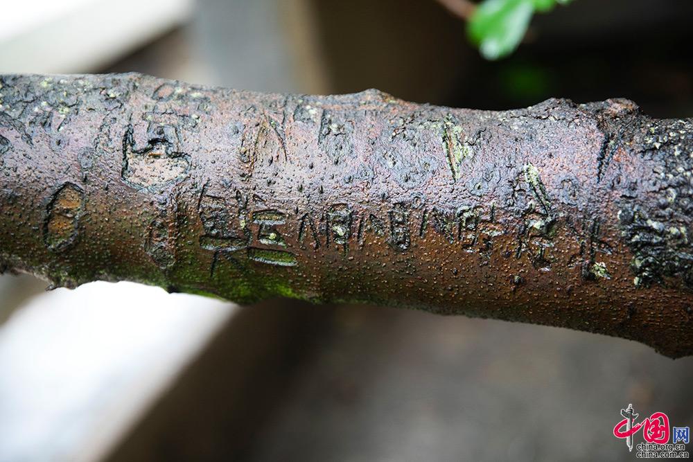 无花果树的树干上,还清晰可见“奥运 八月八日”的字样,这是王继才2008年北京奥运的时候亲手刻上去的,当晚,王继才听完收音机后激动不已,翻来覆去睡不着。就刻在刚成活不久的树上,希望这几个字和小树一起长大。中国网记者 董宁 摄影