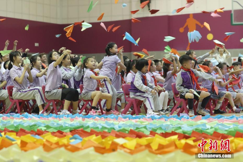 中国儿童成功创造“最长的纸飞机队列”世界纪录