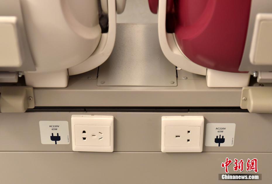 图为座椅下方同时提供中国内地的国标电源插座和香港制式电源插座。 中新社记者 张炜 摄