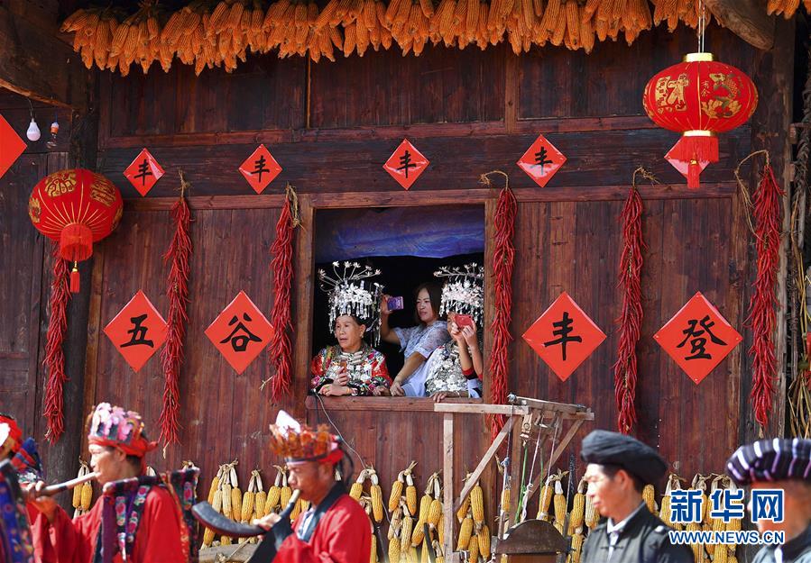 9月20日,在湖南省花垣县龙潭镇青龙村,人们观看“苗族赶秋节”表演。 新华社发(龙恩泽 摄)