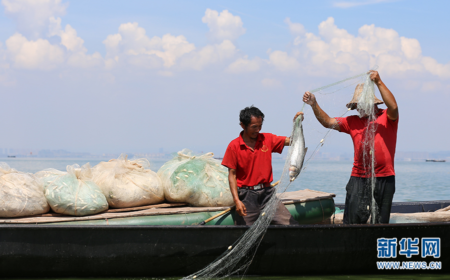 9月21日,“扬帆母亲湖•渔悦古滇美”——2018昆明•晋宁第三届滇池开渔节暨古滇渔文化旅游节开幕,这标志着即日起滇池进入开湖捕捞期。今年是滇池自2012年开湖捕捞以来,连续第7年开湖捕捞。今年开湖捕捞将分两阶段进行,第一阶段自9月21日至9月30日,捕捞各类大鱼;第二阶段自10月3日至11月1日,捕捞银鱼和虾。(新华网 丁凝 普凡 摄影报道)
