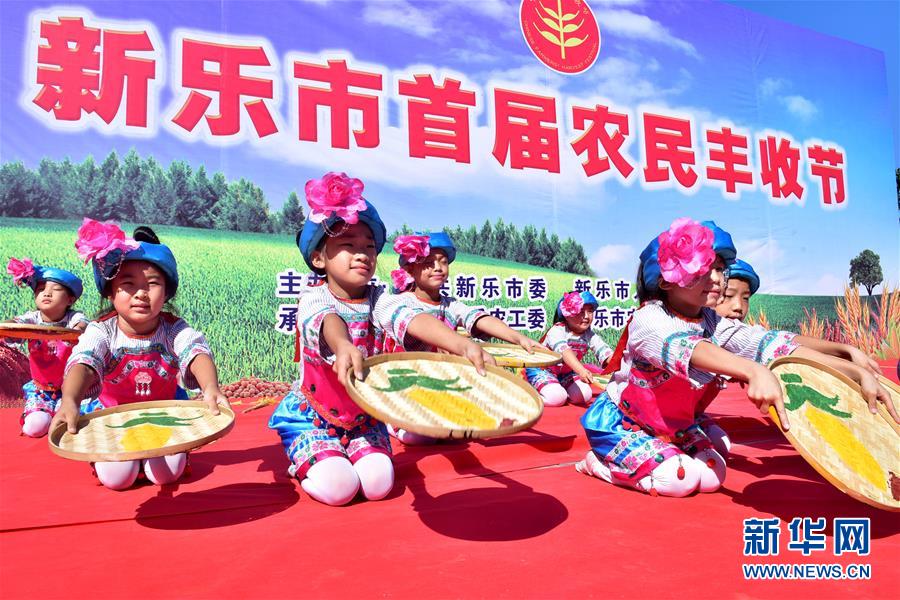 9月22日,小朋友在河北省新乐市首届农民丰收节开幕式上表演节目。 新华社发(贾敏杰 摄)