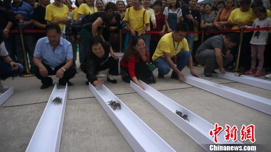 重庆民众举行大闸蟹“赛跑”游戏迎“中国农民丰收节”