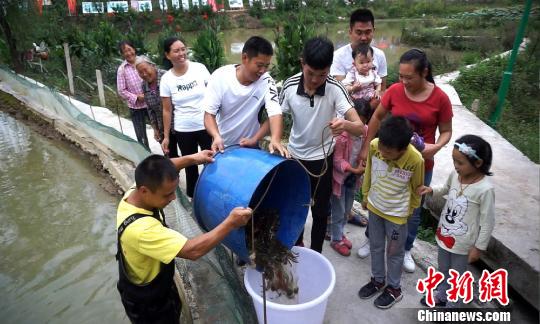 重庆民众举行大闸蟹“赛跑”游戏迎“中国农民丰收节”