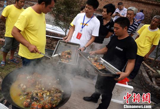 重庆民众举行大闸蟹“赛跑”游戏迎“中国农民丰收节”