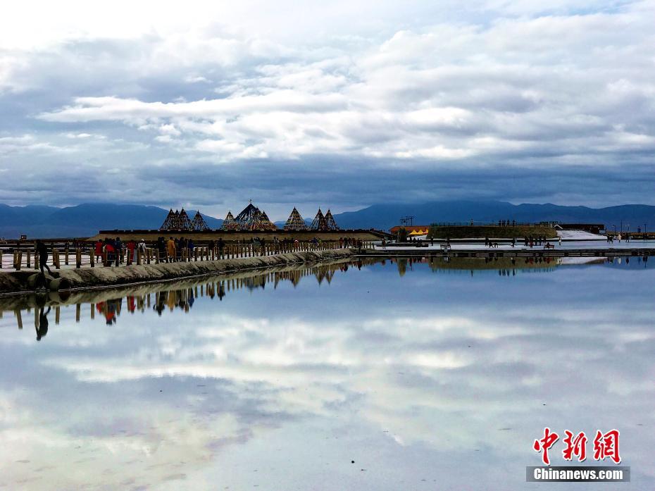 茶卡盐湖像镜子一样。 袁凤芳 摄