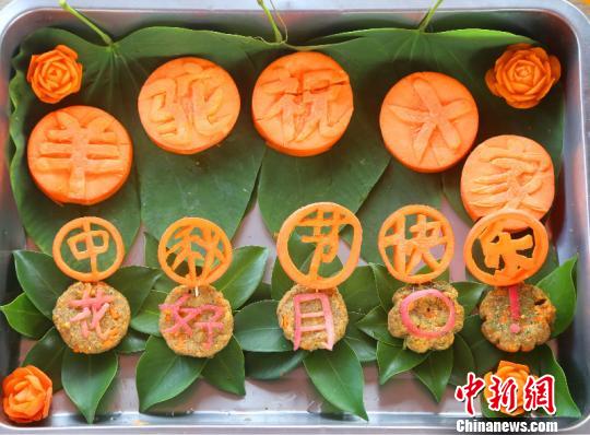 图为饲养员为羊驼制作的胡萝卜月饼。 杨巧 摄