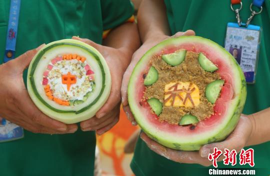 动物吃的“月饼”是饲养员根据它们平日喜欢的食材制作的。图为大象的水果月饼。 杨巧 摄