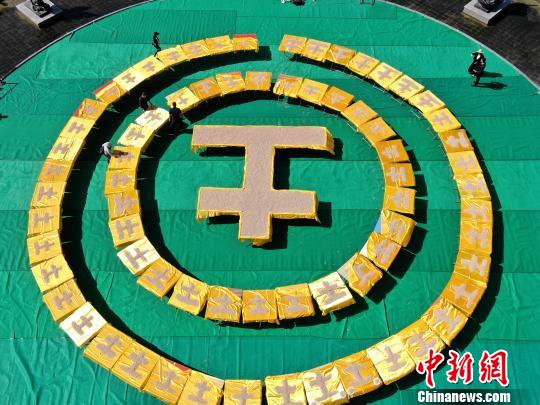 工作人员正在布置现场,比赛位置上都有众多土馍组成的“土”字组成,清晰可见。 王中举 摄