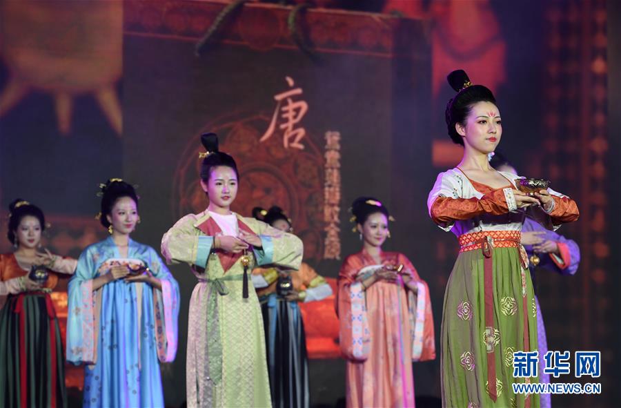 西安陕西历史博物馆讲解员在中秋博物馆之夜活动上为观众表演创意走秀《国宝的前世今生》(9月22日摄)。 9月22日晚,陕西历史博物馆举办“长安明月夜”中秋博物馆之夜公益活动,邀请200余位市民走进陕西历史博物馆,让参与者们深入了解珍贵的文化遗产,感受传统文化的魅力。 新华社记者 李一博 摄
