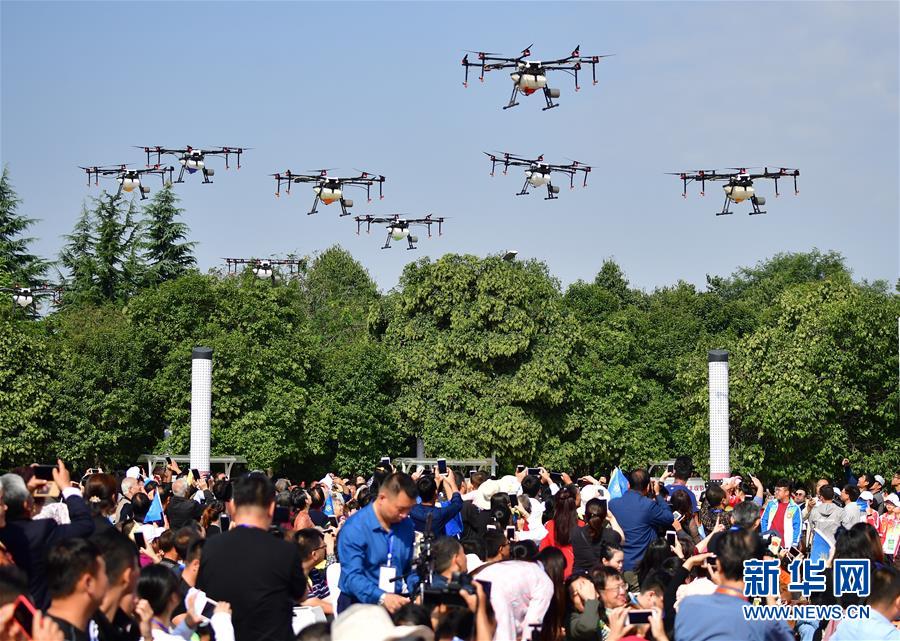 9月23日,植保无人机群亮相杨凌分会场中心会场庆丰收大联欢活动。 新华社记者邵瑞摄