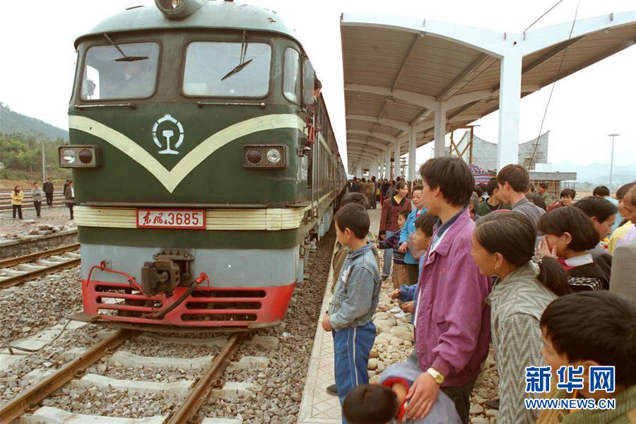 1998年12月6日,首列福州-南平-武夷山旅游客运列车缓缓驶进武夷山站。 新华社记者张国俊 摄