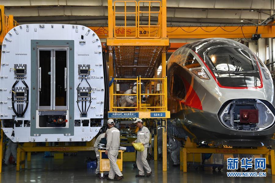 2018年5月10日,“复兴号”动车组在总装生产线上装配。新华社记者 李紫恒 摄