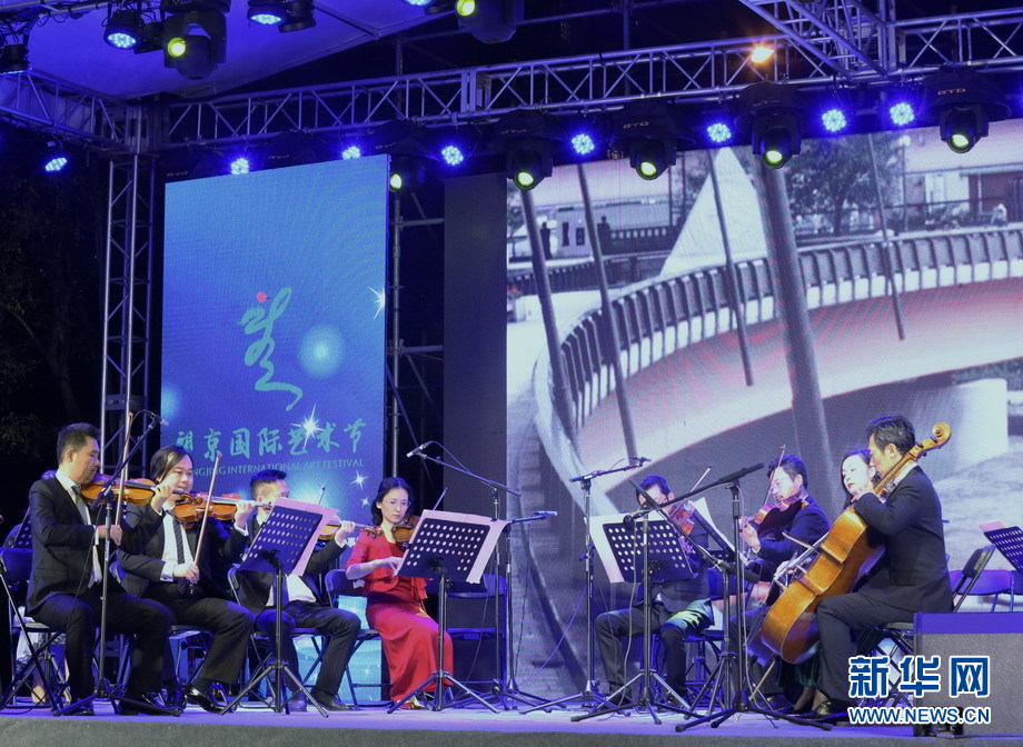 9月25日晚,演员在首届望京国际艺术节开幕式上演奏。新华社发