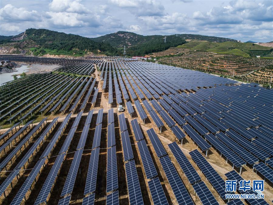 空中俯瞰湖州市埭溪镇东红村的光伏发电站(9月26日无人机拍摄)。新华社记者 徐昱 摄