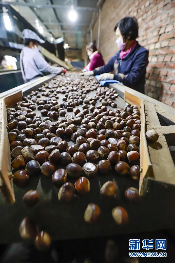 9月26日,河北唐山遵化市建明镇苇城峪村农民在板栗加工厂挑选板栗。新华社发(刘满仓 摄)