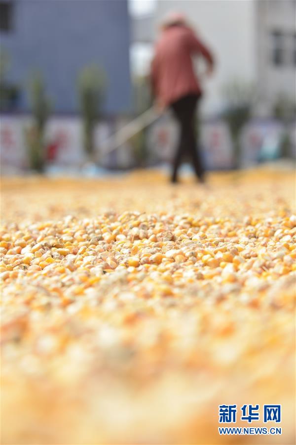 9月26日,山东省聊城市茌平县贾寨镇前寨村的村民在晾晒玉米。