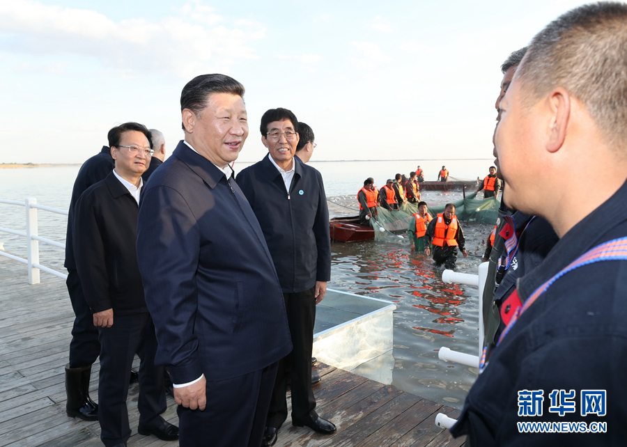 9月26日,中共中央总书记、国家主席、中央军委主席习近平在吉林省松原市考察。这是习近平在查干湖同正在进行捕捞作业的渔民亲切交谈。新华社记者 鞠鹏 摄