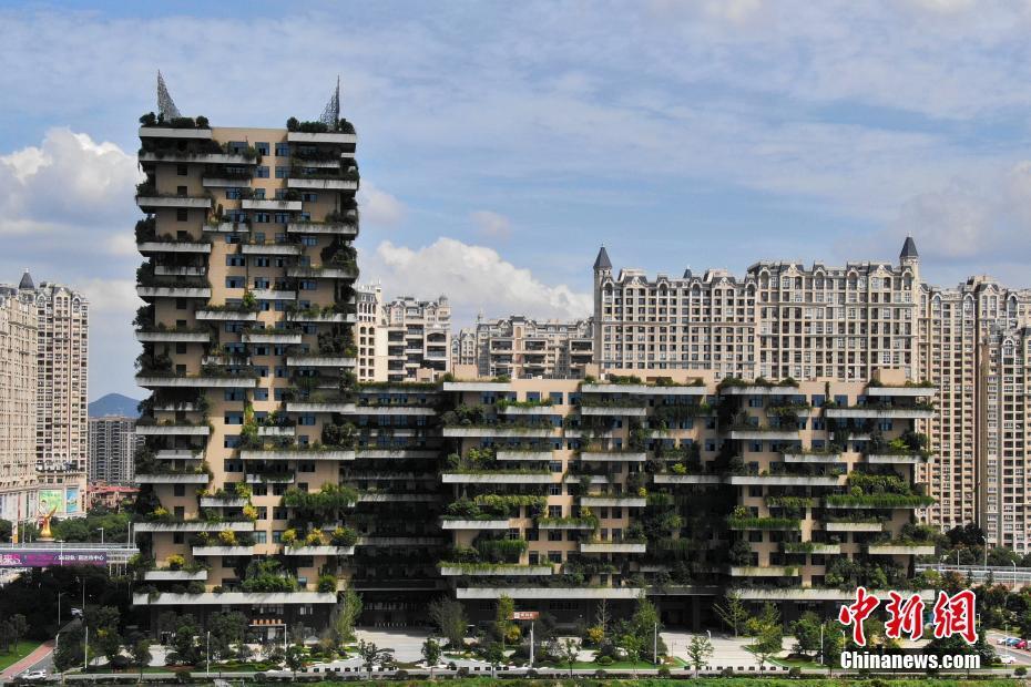 9月26日,航拍江苏句容一幢在外墙种植大量植物的建筑,绿意盎然的环保设计令人耳目一新。中新社记者泱波摄