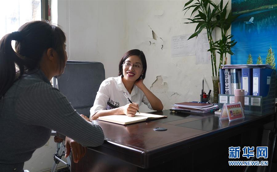 9月27日,当地村民向方月萍(右)讲述家中困难。 新华社记者 胡晨欢摄
