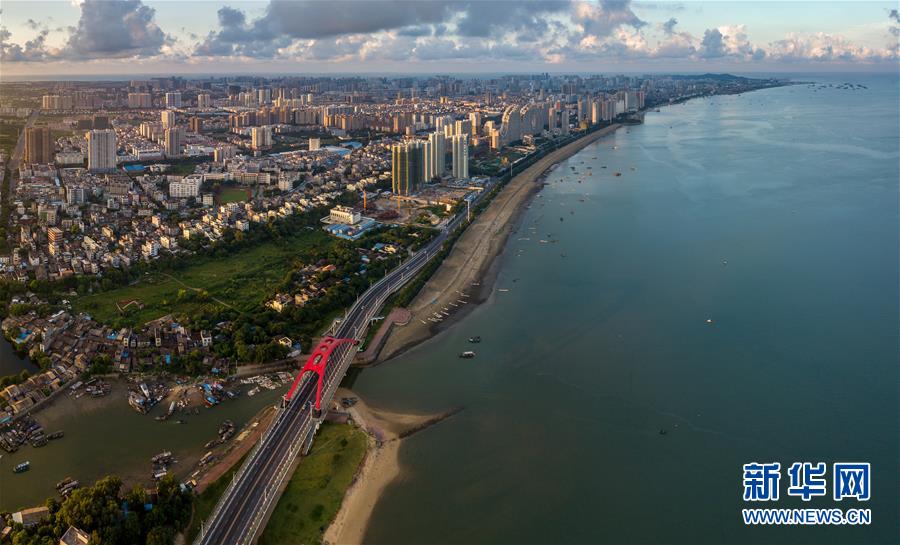 这是广西北海市海景大道沿线景观(9月26日无人机拍摄,拼接照片)。 新华社记者 李鑫 摄