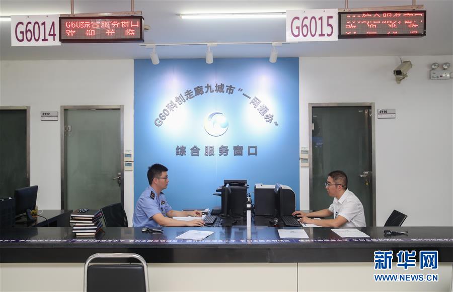这是上海市松江区行政服务中心内的G60科创走廊九城市“一网通办”综合服务窗口(9月28日摄)。新华社记者 丁汀 摄