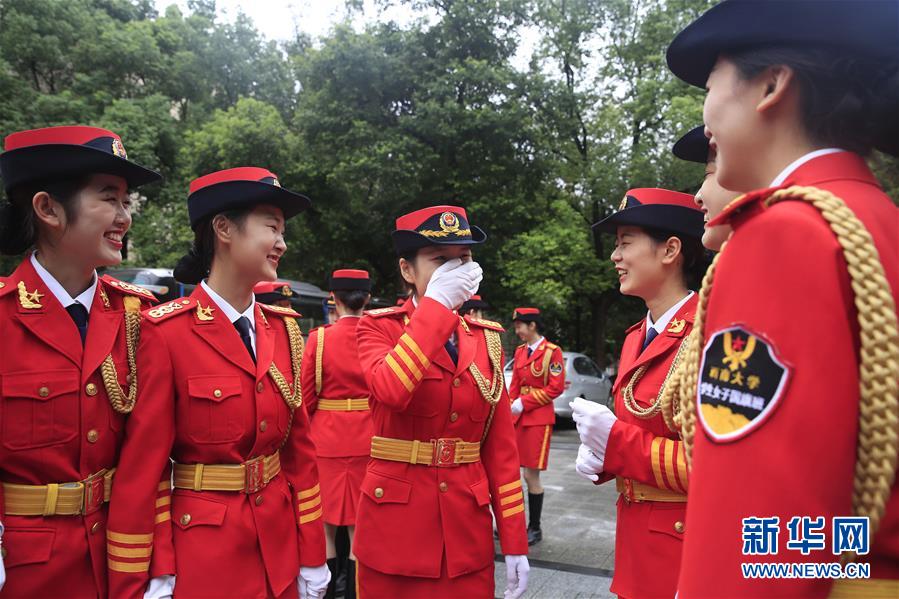 9月28日,范紫琳(中)在训练间隙和伙伴们说笑。 新华社发(秦廷富 摄)