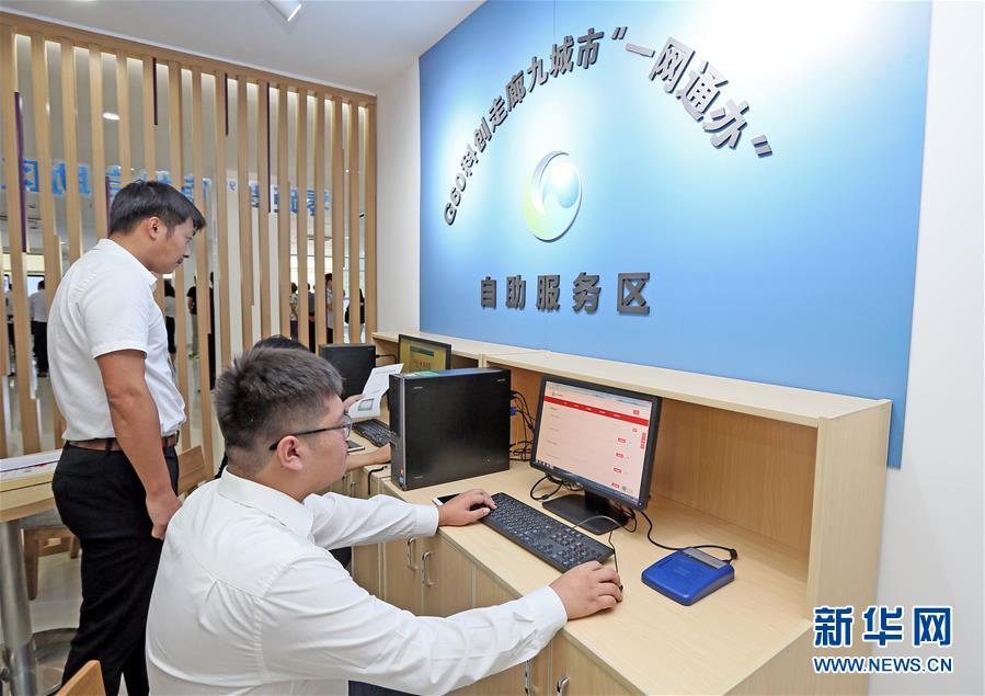 9月28日,上海一家企业的工作人员在“一网通办”自助服务区查询信息。新华社发(蔡斌 摄)