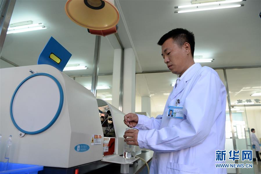 9月27日,黑龙江北大荒建三江国家农业科技园区工作人员张少波在做土壤测试分析。新华社记者王凯摄
