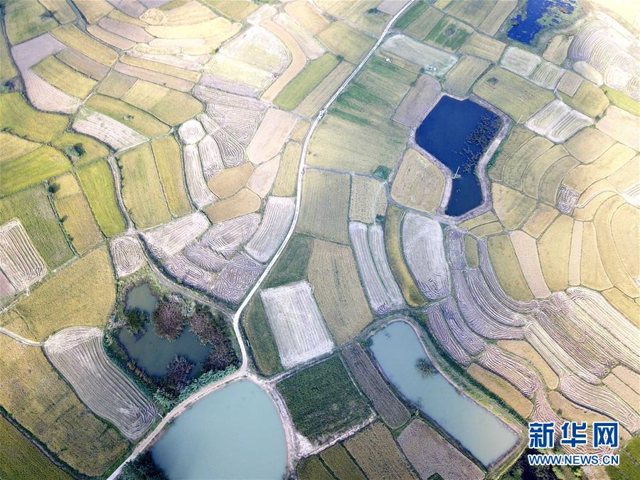 这是小岗村的稻田(9月26日无人机拍摄)。 新华社记者 刘军喜摄