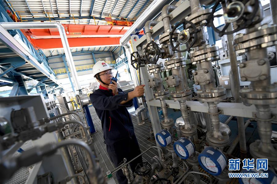 延安煤油气资源综合利用项目甲醇制烯烃中心的工作人员进行设备巡检(9月28日摄)。新华社记者 刘潇 摄