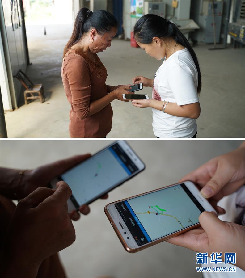 9月29日,在湖南省益阳市资阳区新桥河镇田庄湾村,龚玉姣(右)与母亲龚菊梅用手机远程查看自家农机作业情况(拼版照片)。眼下正是水稻成熟的时节,在湖南省益阳市资阳区新桥河镇田庄湾村,农机手龚玉姣在稻田里忙碌。2008年开始,龚玉姣一家开始承包流转土地,从最开始的20余亩到目前的2000余亩,并先后成立水稻种植专业合作社和农机服务农民专业合作社。如今,“种田大户”龚玉姣家不仅在农时为周围农户提供50余个短期增收岗位,也带动了更多农户加入到稻田承包的行列中。新华社发(李梦娇 摄)