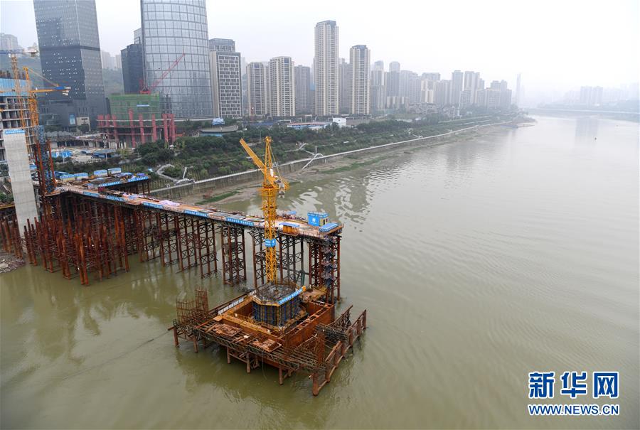9月29日拍摄的重庆轨道交通9号线一期工程五标段嘉华轨道专用桥施工现场。 目前,由中国建筑股份有限公司承建的重庆轨道交通9号线一期工程建设正在加紧施工。 新华社记者王全超摄