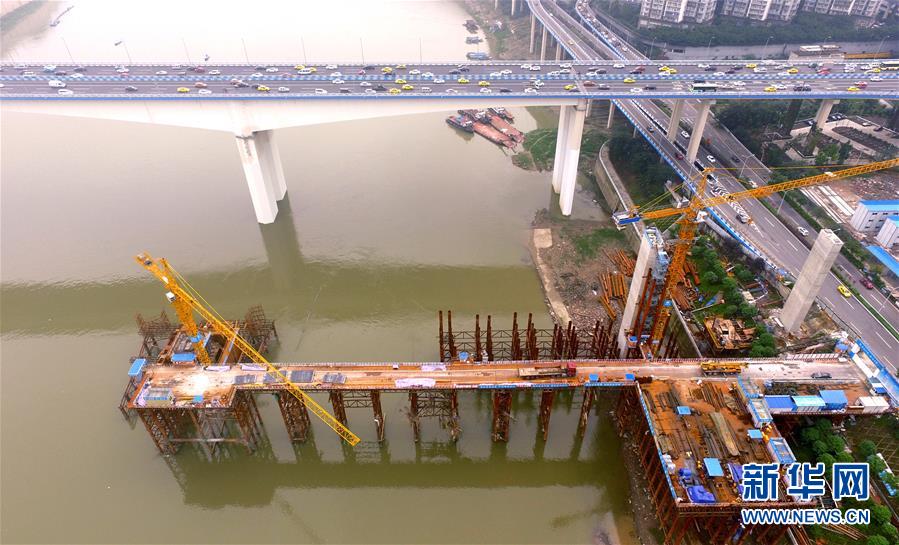 9月29日无人机拍摄的重庆轨道交通9号线一期工程五标段嘉华轨道专用桥施工现场。 目前,由中国建筑股份有限公司承建的重庆轨道交通9号线一期工程建设正在加紧施工。 新华社记者王全超摄