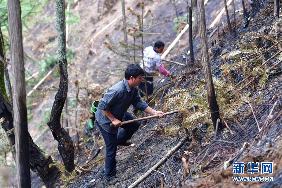村民在山上种植百香果(5月1日摄)。日前,位于黔桂交界的乌英苗寨迎来了百香果收获季,党英水果种植专业合作社200多亩百香果基地的水果正陆续采摘上市。新华社记者 黄孝邦 摄