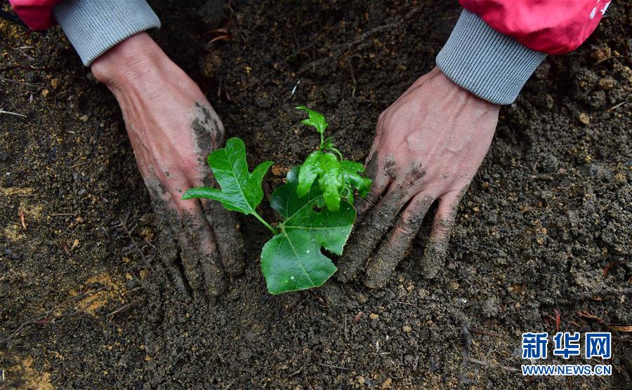 村民在种植百香果果苗(3月29日摄)。日前,位于黔桂交界的乌英苗寨迎来了百香果收获季,党英水果种植专业合作社200多亩百香果基地的水果正陆续采摘上市。新华社记者 黄孝邦 摄
