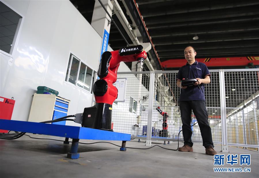 9月29日,在重庆市北碚区一家机器人生产企业,技术人员在测试一款应用于电子信息行业的机器人。新华社记者 任正来 摄