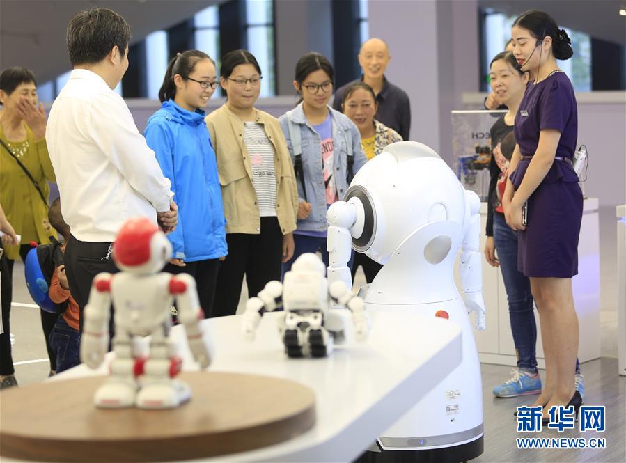 9月29日,观众在重庆市北碚区一家机器人展示中心与服务型机器人互动。新华社记者 任正来 摄