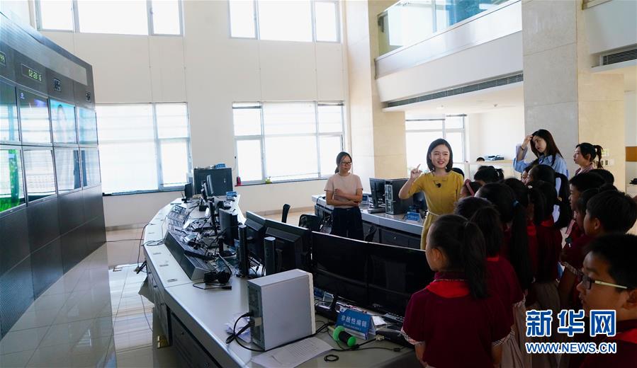 9月30日,学生在了解天气预报制作流程。新华社记者 胡晨欢 摄