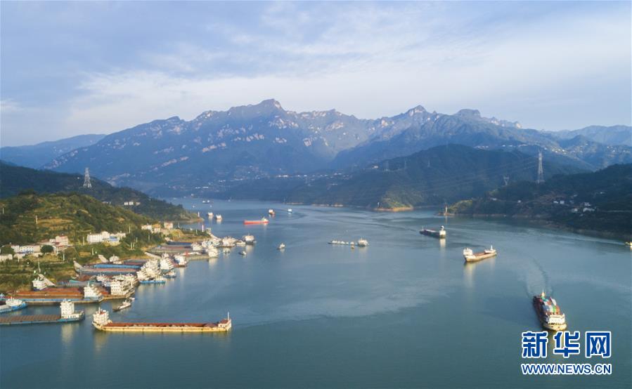 10月3日,船舶行驶在三峡大坝上游秭归县沙湾水域。新华社发(郑家裕 摄)