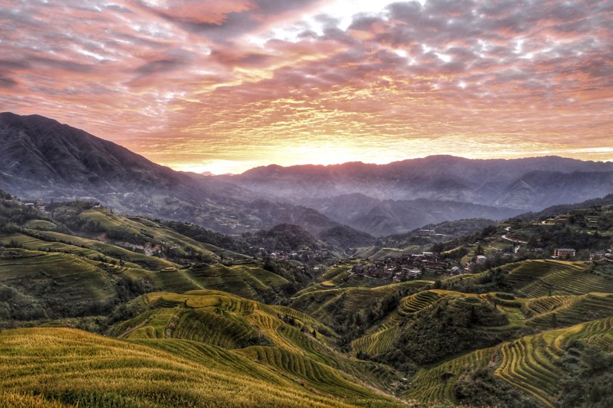 2018-09-30,桂林龙胜各族自治县。晨曦初露,梯田在云海的覆盖下,若隐若现,宛如置身缥缈仙境。作者:四叶草