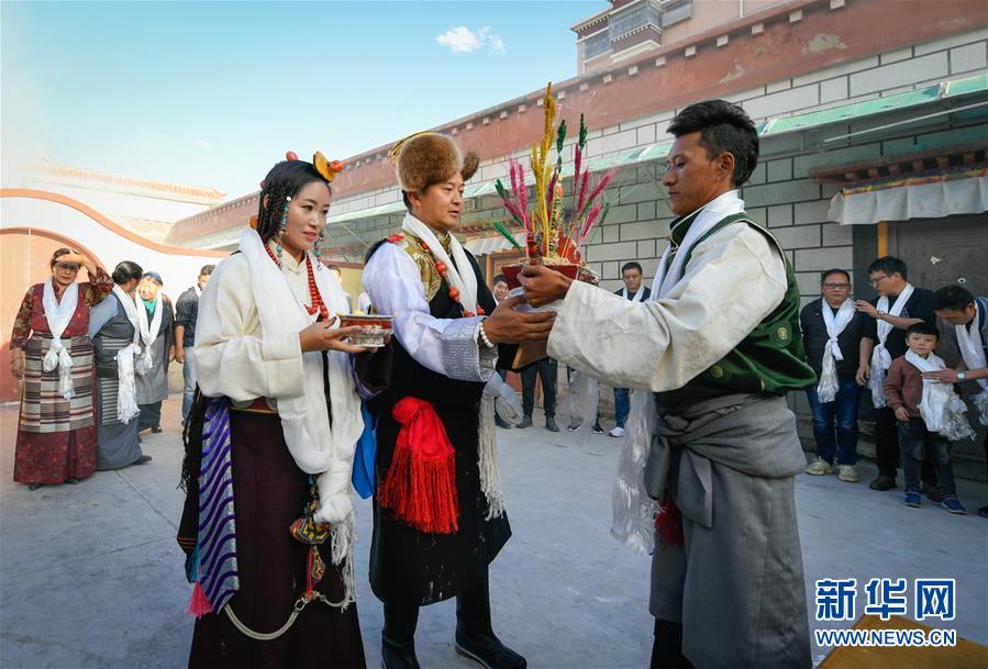 10月5日,几名女孩在海南省三亚市南山景区跳竹竿舞。