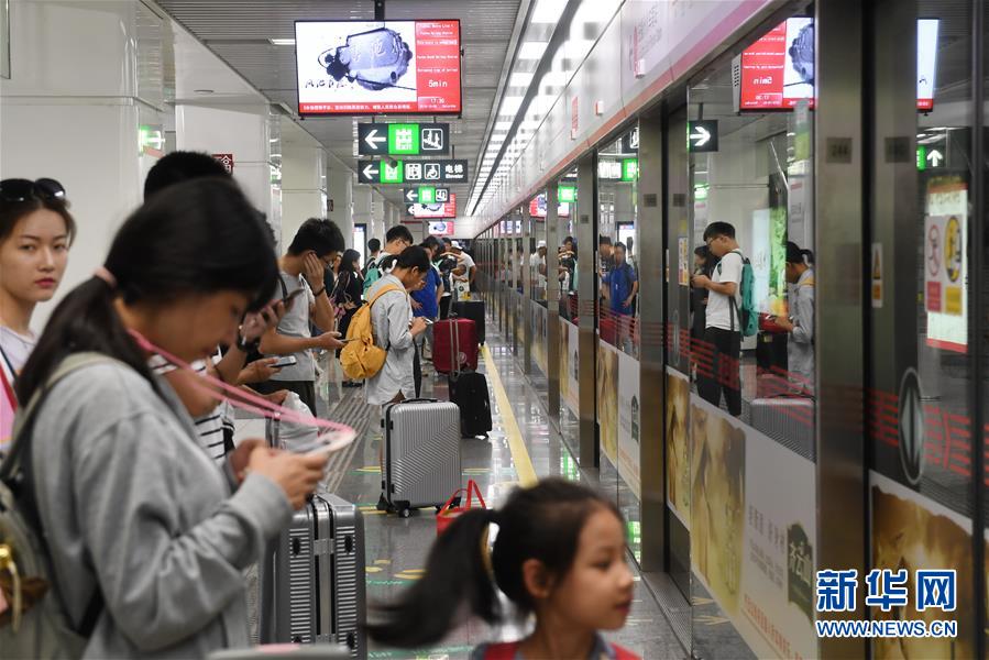 10月6日,乘客在福州地铁1号线等候开往福州火车南站的列车。