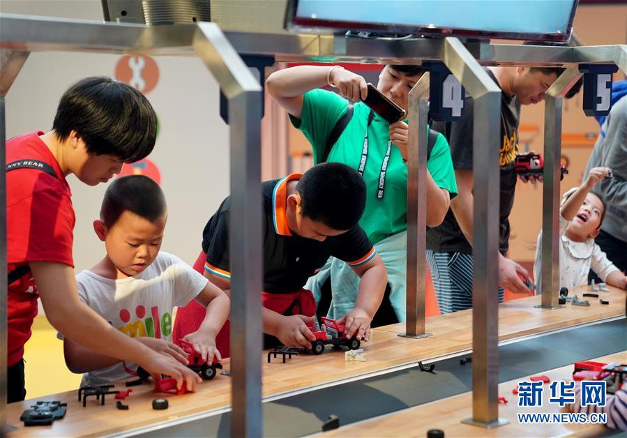 10月7日,小朋友和家长一起组装汽车玩具。十一长假期间,上海汽车博物馆举办“穿越时空的旅行”亲子科技嘉年华活动,让家长与孩子们享受亲子假期。新华社记者 刘颖 摄