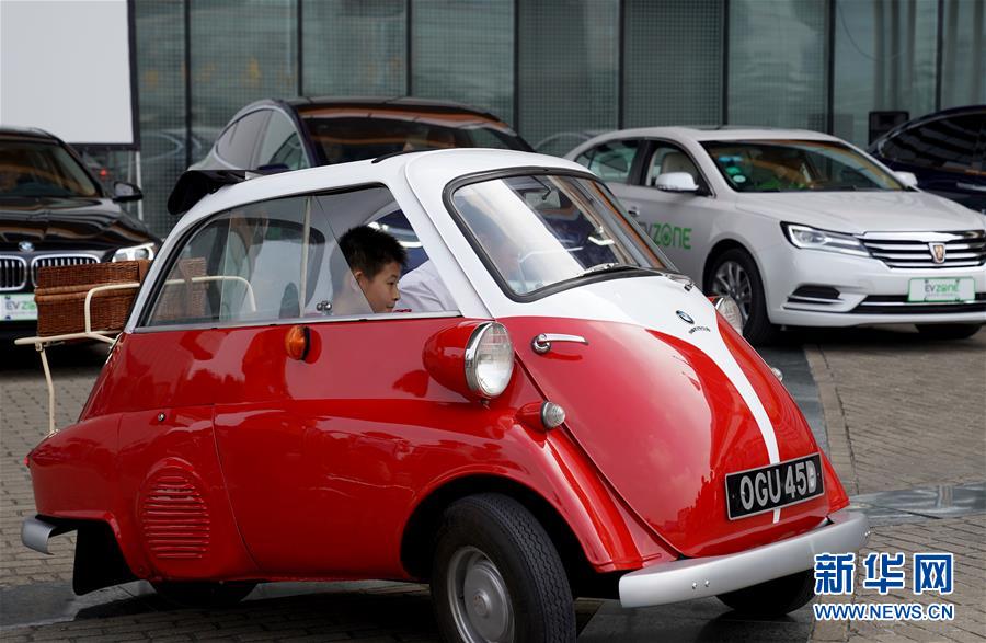 10月7日,小朋友乘坐古董车。十一长假期间,上海汽车博物馆举办“穿越时空的旅行”亲子科技嘉年华活动,让家长与孩子们享受亲子假期。新华社记者 刘颖 摄