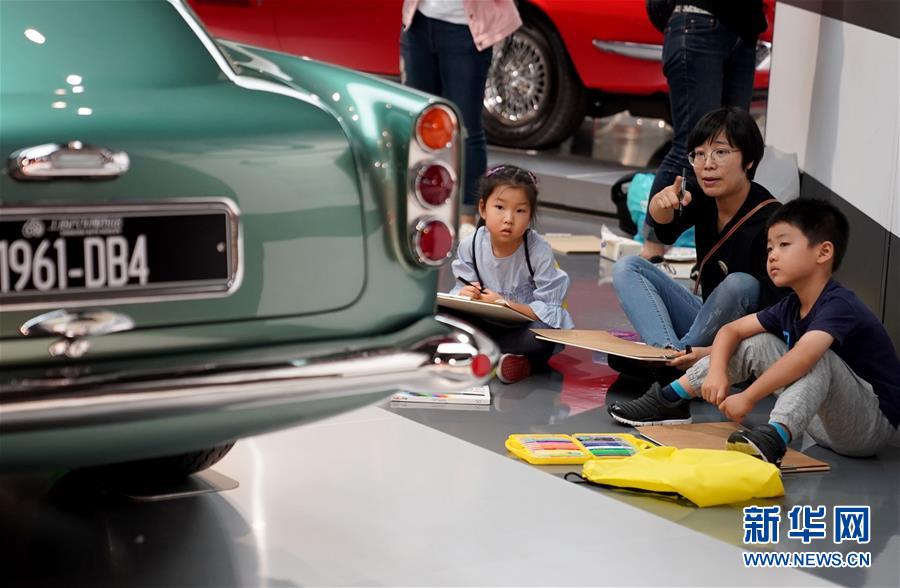 10月7日,小朋友和大人一起参与汽车绘画活动。十一长假期间,上海汽车博物馆举办“穿越时空的旅行”亲子科技嘉年华活动,让家长与孩子们享受亲子假期。新华社记者 刘颖 摄