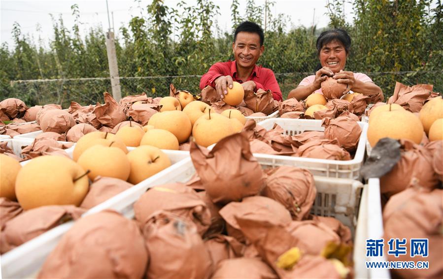 10月8日,山东省邹平县台子镇果农整理采摘的黄河梨。